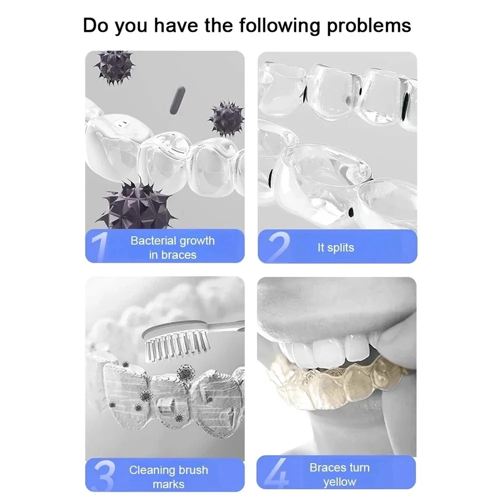 The 50KHZ Ultrasonic Cleaning Machine uses advanced ultrasonic technology to meticulously clean your braces, retainers, and dentures. This machine generates millions of bubbles that collapse to create tiny cleaning shockwaves, effectively removing stubborn stains and bacteria. It ensures that your dental appliances are not just visually clean, but also hygienically safe, because a clean mouth leads to a healthier smile.